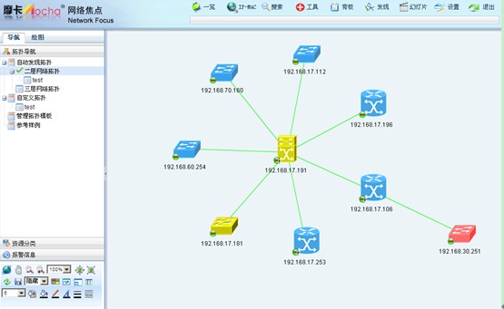 要辦理好網(wǎng)絡(luò),那么首要就需求有一個(gè)具體的網(wǎng)絡(luò)拓?fù)鋱D,好的拓?fù)鋱D能夠一望而知,直觀的看到網(wǎng)絡(luò)中的各個(gè)網(wǎng)絡(luò)設(shè)備的運(yùn)轉(zhuǎn)狀況和散布狀況。