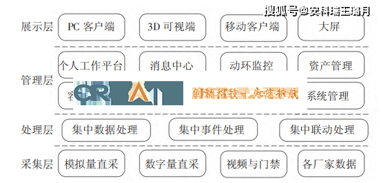 動力環(huán)境集中監(jiān)控平臺軟件采用B/S結(jié)構(gòu),通過在機(jī)房中安裝各種傳感器及數(shù)據(jù)采集設(shè)備進(jìn)行底層數(shù)據(jù)采集,外廠家設(shè)備需提供通信接口及其開放的通信協(xié)議,進(jìn)行數(shù)據(jù)“翻譯”處理,通過機(jī)房監(jiān)控平臺集中監(jiān)控,全中文、圖形化;界面結(jié)構(gòu)層次清晰,實時反映數(shù)據(jù)狀態(tài)。集中監(jiān)控平臺需要能運(yùn) 行于中文Windows操作系統(tǒng)。動力環(huán)境集中監(jiān)控平臺軟件采用模塊化設(shè)計,可劃分為采集層、處理層、管理層及展示層,如圖3所示。其中,個人工作平臺能提供動環(huán)監(jiān)控主界面、告警事件列表、待辦事項、告警等級統(tǒng)計、PUE實時曲線、基礎(chǔ)設(shè)施分類餅狀圖等可自由選擇的個性化定制界面。報表管理可根據(jù)機(jī)房管理原有報表格式生成詳細(xì)的數(shù)據(jù)記錄報表和數(shù)據(jù)分析報表,存儲格式為Excel或PDF;數(shù)據(jù)存儲時間需長于1年,且具有防篡改功能。軟件交互界面中,動環(huán)監(jiān)控模塊可直觀看到各個機(jī)房實時運(yùn)行狀態(tài),設(shè)置機(jī)房名稱、設(shè)備圖標(biāo)等超鏈接可直達(dá)各子界面,通過溫濕度監(jiān)測、門禁、視頻監(jiān)控、溫度場、漏水監(jiān)測、紅外監(jiān)測、消防監(jiān)測等按鈕可直達(dá)各分畫面,并提供基于電子地圖、實時曲線、餅狀圖、折線圖、直方圖等多形式數(shù)據(jù)展現(xiàn)方式,便于運(yùn)維人員分析設(shè)備歷史運(yùn)行趨勢,以判斷設(shè)備狀況。